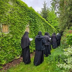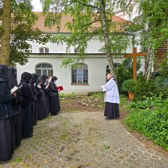 Jak co roku przed uroczystością Wniebowstąpienia Pańskiego udałyśmy się w procesji do ogrodu modląc się o urodzaje. Przy tej okazji Ksiądz Kapelan pobłogosławił kapliczkę Dzieciątka Jezus.