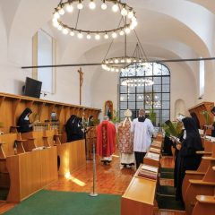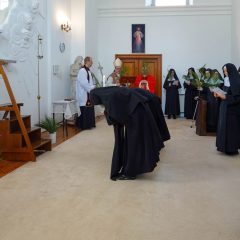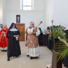 Rozpoczęcie Wielkiego Tygodnia w tym klasztorze poświęconym wieczystej adoracji Jezusa w Eucharystii jest kolejnym przypomnieniem, aby przeżywać ten czas i Triduum Paschalne ze wzrokiem utkwionym w Jezusie (por. Hbr 12,2), prawdziwym człowieku i prawdziwym Bogu, naszym jedynym Odkupicielu i naszej jedynej, prawdziwej nadziei. Podczas tej Mszy Świętej prośmy o tę łaskę dla siebie i dla całego Kościoła.