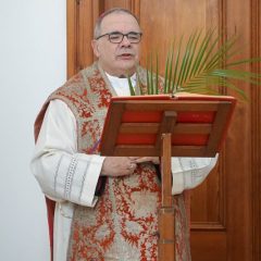 a) Przed chwilą usłyszeliśmy opis Męki Pańskiej, który zapowiadał wydarzenia, nad którymi będziemy rozmyślać i celebrować w tych dniach. Ukazał nam on fizyczne i duchowe cierpienia Jezusa, a my z pewnością, jeśli nasze serca nie są zatwardziałe, nie możemy pozostać na nie obojętni. Ale dlaczego cierpienia i śmierć, które Jezus dzielił z nami jako prawdziwy człowiek, są tak ważne, tak decydujące, że mówimy, iż są przyczyną naszego zbawienia? Sam Sobór Nicejski daje nam niezmienną od 1700 lat odpowiedź, ucząc nas, że Jezus nie jest tylko człowiekiem, ale jest Synem Bożym. Jego boskość nadaje Jego męce nieskończoną wartość, wyzwalającą i uświęcającą moc. Ukrzyżowany zbawia nas, ponieważ rzeczywiście jest prawdziwym człowiekiem, ale nie tylko człowiekiem, ale jak uczy nas Kościół: „Ten, który został ukrzyżowany w ciele, nasz Pan Jezus Chrystus, jest prawdziwym Bogiem, Panem chwały i Jednym z Trójcy Świętej” (DS. 432). To właśnie czyni Jego cierpienie i śmierć wyjątkowymi i zbawczymi dla nas! W tych dniach nigdy nie traćmy z oczu pełnej tożsamości Tego, którego kontemplujemy, świętując najważniejsze dni Jego ziemskiej egzystencji.
