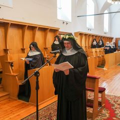 This Sunday’s Communion antiphon harmonizes beautifully with the 25th anniversary of the monastic profession of our sister Mary Małgorzata. During the concelebrated Holy Mass, the jubilarian renewed her vows and, in accordance with the Benedictine tradition, sang the verse of Psalm 119: Suscipe – Receive me, O Lord, according to your promise, and I shall live. And do not disappoint my hope.